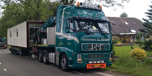 Het vervoer van grote objecten is een uitdaging op zich. Op welk materieel gaat u het object vervoeren? Hoe gaat u de lading zekeren? Hoe manoeuvreert u deze op de juiste locatie? Bij Transportbedrijf G.L. de Haan houden we van deze uitdagingen. Al jarenlang zijn we gespecialiseerd in exceptioneel transport. We vervoerden uiteenlopende objecten als machines, tanks, pontons, ketels, betonelementen, spoorrails en -wissels, transformatoren, mobile homes enz.. Zogenaamde ondeelbare ladingen die de toegestane afmetingen overschrijden. Daar is vaak een ontheffing van de wegbeheerder voor nodig. De Haan verzorgt zelf al uw ontheffingsaanvragen en beschikt tevens over begeleidingsvoertuigen in eigen beheer.